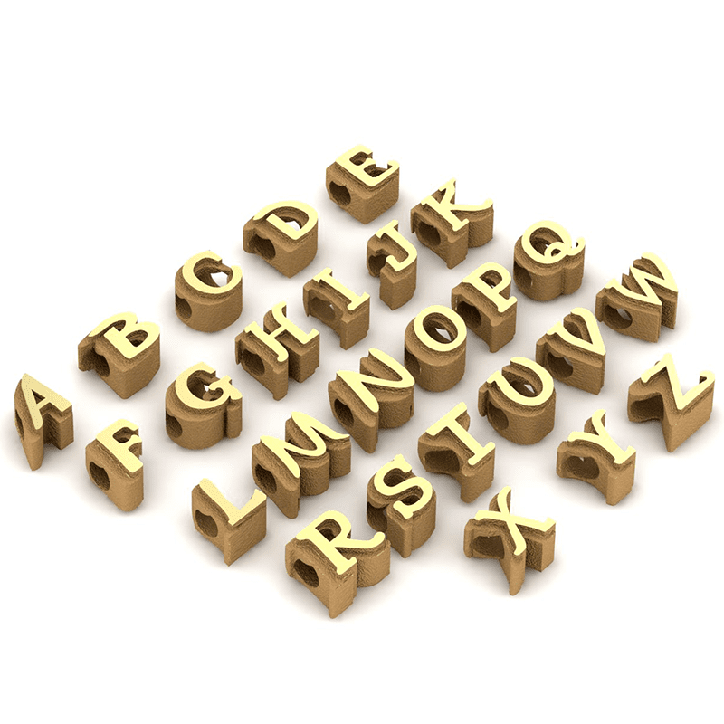 JOYa-hangers zijn gemaakt van 14k goud, bij het alfabet variërend in grootte van 5 mm.